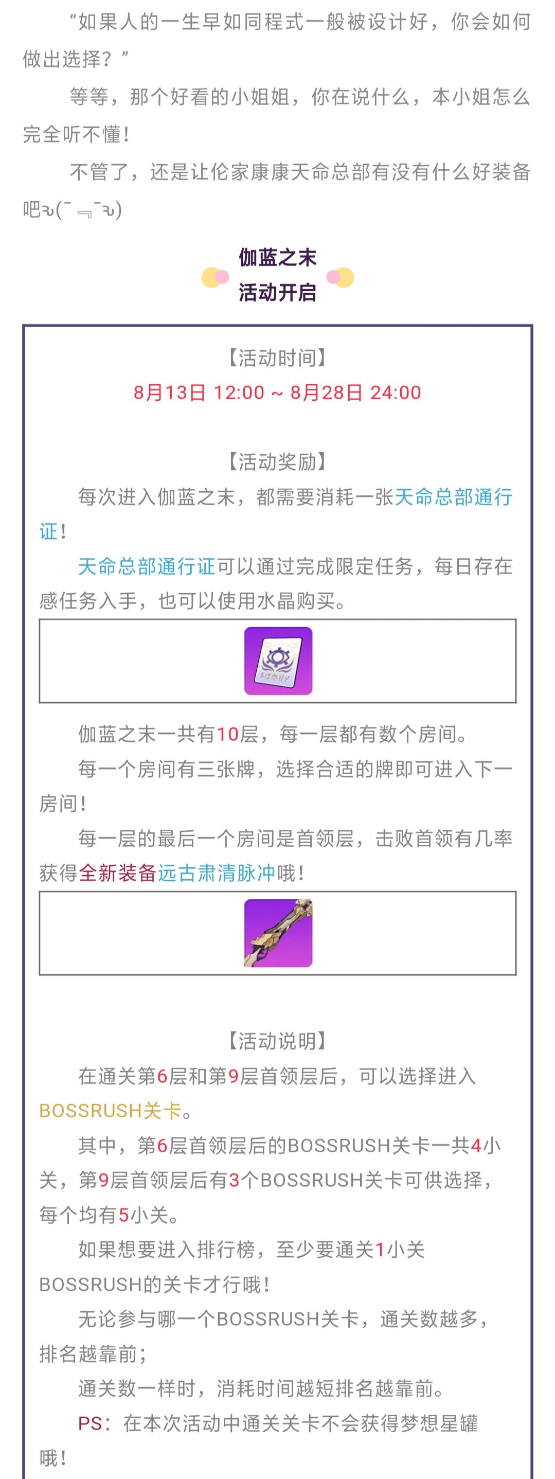 “如果人的一生早如同程式一般被设计好,你会如何做出选择?”等等,那个好看的小姐姐,你在说什么,本小姐怎么完全听不懂!不管了,还是让伦家康康天命总部有没有什么好装备吧ԅ(¯﹃¯ԅ)伽蓝之末 活动开启伽蓝之末 系列任务开启!远古梦想家 系列任务开启!