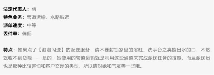 普蕾提:这就是天魔物流的官网吗……进去看看……啊有广告……跳过广告——感谢关注天魔物流。普蕾提:啊?什么东西?我不是按到那个跳过广告的按钮了吗?喂……那个按钮也太小了吧?现在,我来为亲爱的客户您来介绍我们的天魔物流旗下主营的物流分公司~普蕾提:我的流量!S、Skip按钮在哪?小风筝包裹努力搬运Cyber Logistics普蕾提:这算是播完了吧?好!我们再介绍下一个~普蕾提:哇