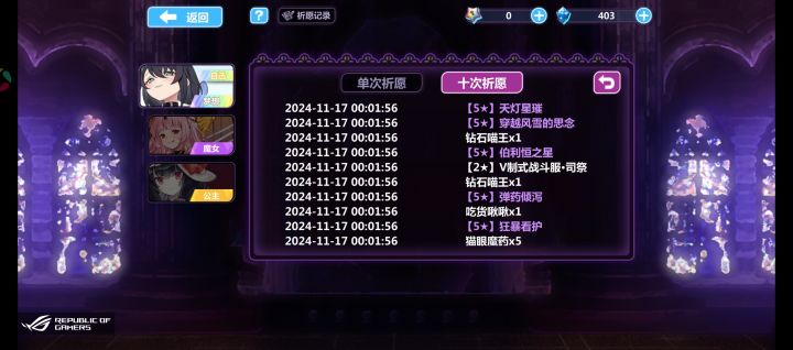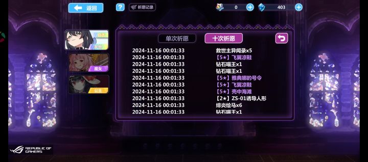 没想到啊没想到,之前白嫖的20个公主祈愿星星一发十连就把琪亚娜抽到了