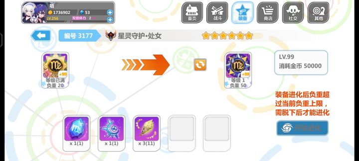 我背包已经把处女座卸了 可为什么还是进化不了 提示超重