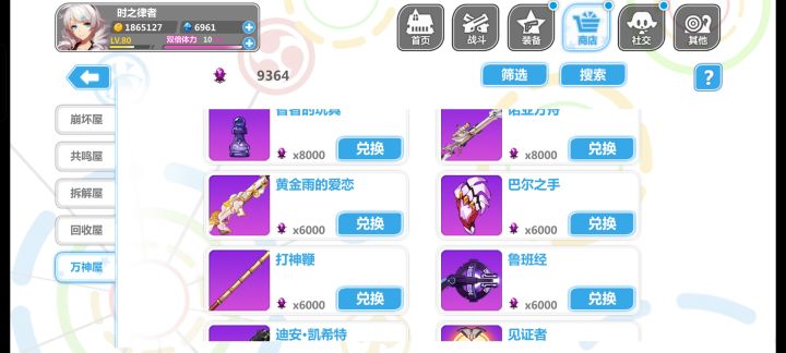 如图所见,体系缺失严重,能用的几件喷雾就是三个,崩坏屋不知道换哪件好。