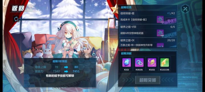 材料我都集齐了,那个突破之姬不知道为何点不了,重启也没用,导致我一直卡在这里无法突破,怎么回事