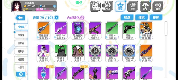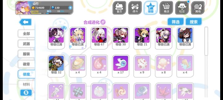 抽了红娃,正在准备弄空想娃娃,但服装和徽章这些包括备用装备都不知道怎么弄。