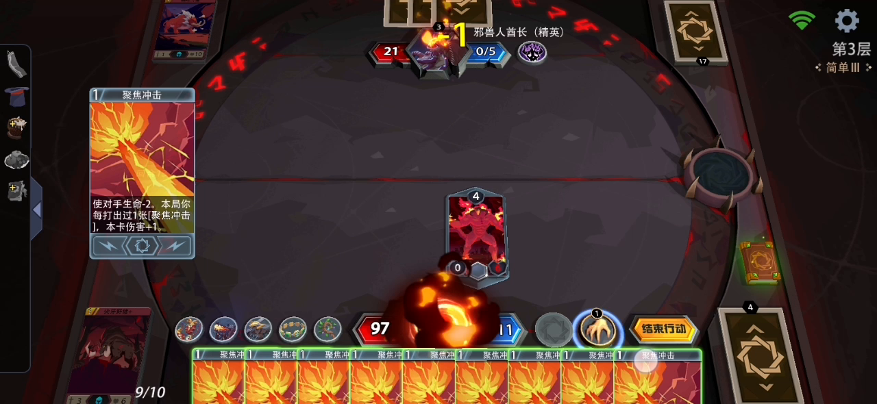只要几张炎魔之拥加几张低级废卡就能很快刷满聚焦冲击,十张聚焦冲击下来boss基本凉凉