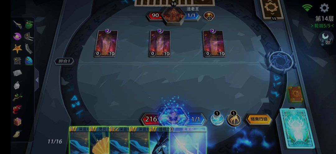 使用天才占星师,打到10层都不给我 海潮涌动 唯一的一张还是转换来的(建议大家选可以转换三张牌的符文,防止脸黑,遇不到) 逼不得已,我直接固有三只小蓝龙用于站场和回蓝 其实打法老王最简单的是 扭曲意志+退化,奈何退化被我干掉了,只能抗住一波伤害,等他再放出一个棺木来,然后用三次扭曲意志就好了。 同样,男巫也可以用这个方法去打,等他放出四费生物,再一波干掉他