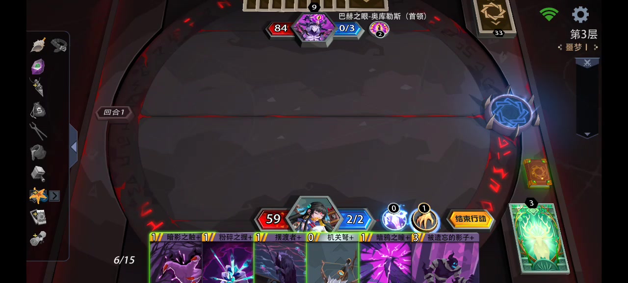 回放牌局BOSS转阶段卡了,所以这把其实是BOSS蓝条归零憋屈走的,蓝点蓝条来,零点蓝条走,每回合的行动只剩下了献祭和结束。其实一开始看见这个角色我是拒绝的,根据其他游戏的经验来说,这种玩脏的派系,一般都挺慢的,而且不容易成型,但是这卡出乎意料的配合的很好。
