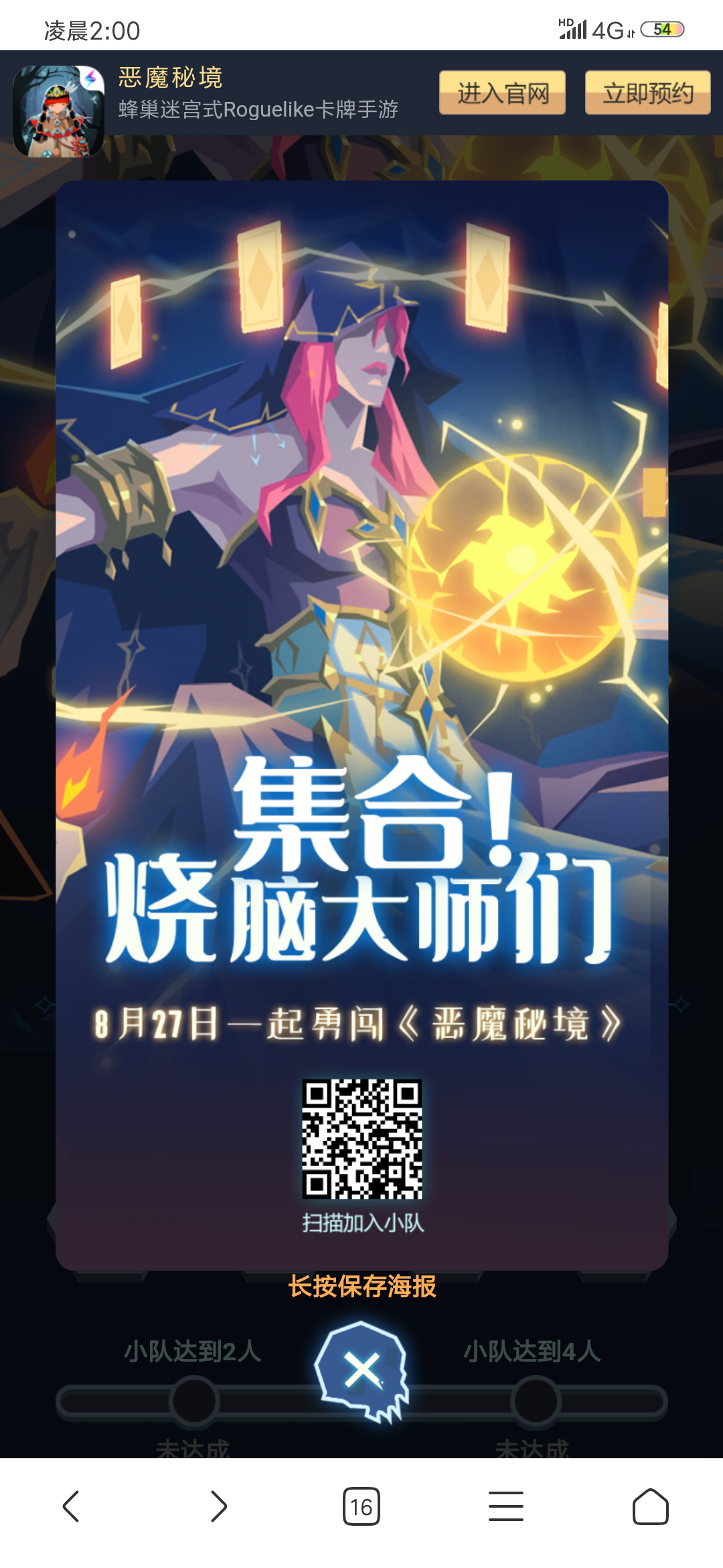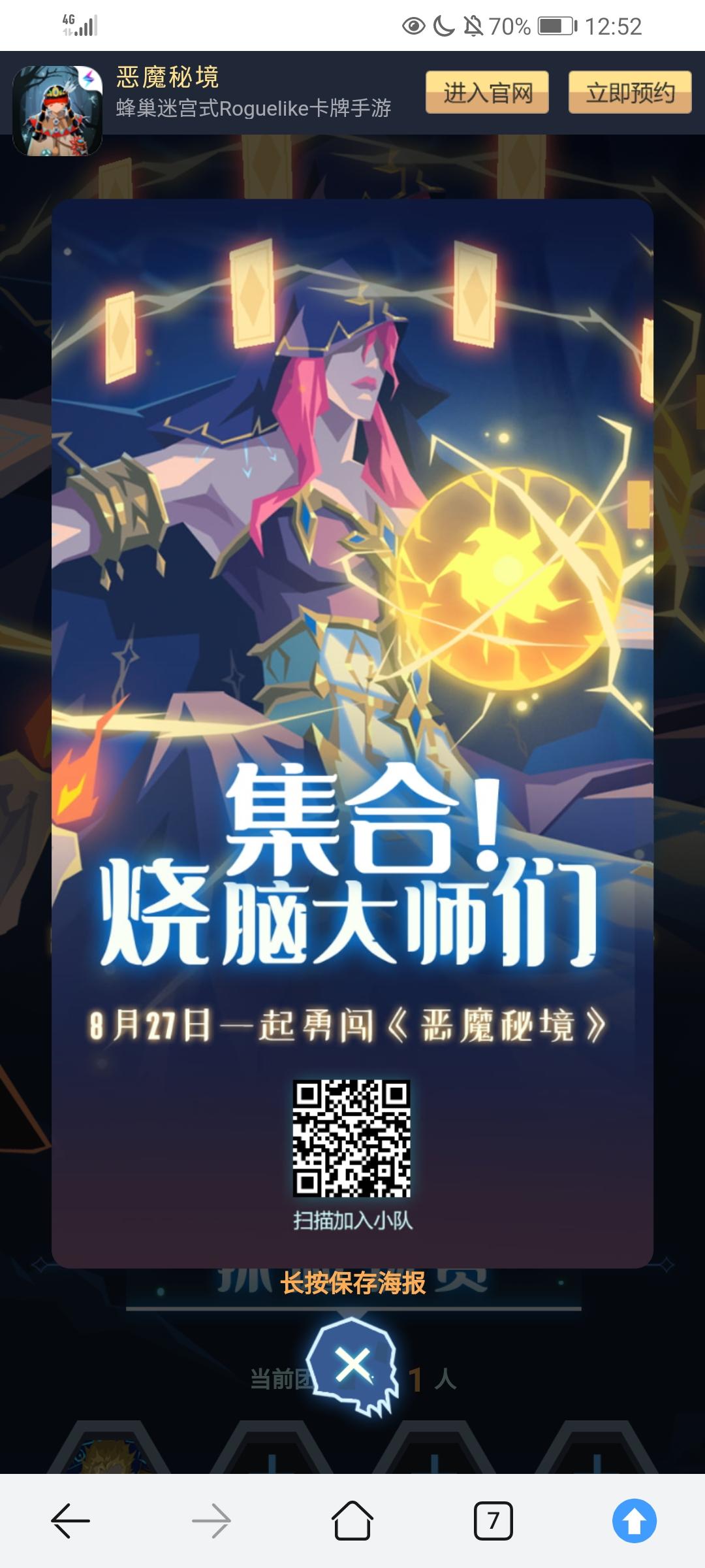 有木有人还没有加小队的哇,白嫖个皮肤他不香嘛,现在不加入更待何时!帅哥美女们,冲冲冲!没有人加的我孤苦伶仃😢在吗?我聪明的小伙伴~快来加入我的烧脑小分队,赢取免费皮肤(ノ゚▽゚)ノ8月27日,一起勇闯《恶魔秘境》!http://cp.leiting.com/em/202108/h5/?groupId=1526