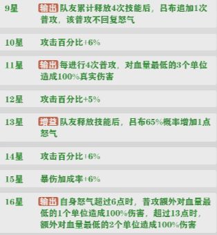 壹.主C 吕布(单体爆发)越到后面越强,特别是9星,13星,16星,其余的S+核心武姬不推荐养成贰.貂蝉(控制减益)主要作用在给敌方武姬上减益效果降怒以及攻击力并且控制对方无法行动一回合,16星之后可以跟吕布进行联动,大大增强吕布的进攻能力。叁.诸葛亮(回血,回怒)诸葛亮基本是必上的武姬,技能不仅能高额群体回血还可以回怒加攻击,配合主C吕布能持续续航肆.左慈(驱散增益)主要针对无敌盾跟增伤的