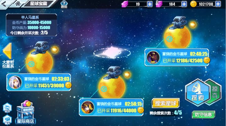金币是以太之城的硬通货,各种升级加强和买买买都需要它~那么,如何快速获得金币呢?请继续往下看吧~金币可从:星球宝藏、主线任务、每日活跃、时光之旅、巅峰对决、任务委托、商城和各种福利中获得。一、星球宝藏星球宝藏,也就是传统意义上的“挖矿”,可获得大量金币。1.点开【冒险】,即可达到星球宝藏入口。2.搜索星球后,可以根据自身战力选择开采的星球;占领或掠夺星球成功后,设置英雄保卫星球,在开采