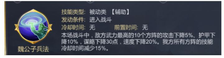 ⭐可玩的技能,已经全部加图片进行显示⭐后续金将攻略会做个统一,嫌麻烦的直接看那个吧。链接:🔺盾兵 3.5系列⭕魏无忌——【最强全体辅助】自身技能 魏公子兵法全体给对面上Debuff,减少我方所有方阵冷却时间。拆卸技能 甲士具装 适合高谋略盾兵(只有一个吴起),给同部队施加护盾⭕吴起 ——【全体普攻恢复】自身技能 吴子兵法 我方所有方阵受到普攻回血(受谋略影响