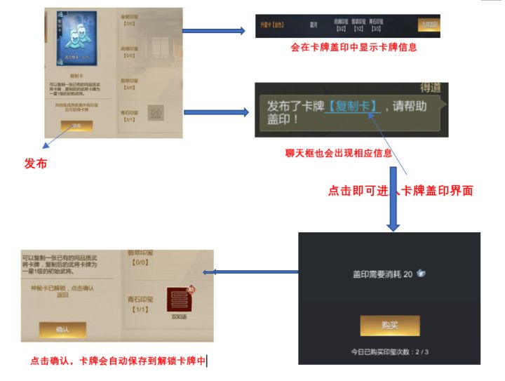 术语解读同盟术语看不懂,不知道该怎么办?没关系,得道将带你了解大秦的种种术语。一、 互盖:互盖印玺,是印玺系统的特色玩法,玩家经常两两一组,互相盖章。1. 点击其中一个未解锁的神秘卡,通过发布来使别人给我盖章。2. 我在接受别人的盖章时,选择还章。或者去世族-印玺-卡牌盖印,也可以查询盖章详情。方便精确到每个给自己盖章的玩家,有借有还,再借不难嘛。二、 换官:印玺系统产生的畸形玩法,