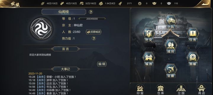 山河潇潇致山河潇潇全体人员的一封信————在氏族活跃度不够,人数不足等诸多原因之下,山河潇潇于2023年11月18日正式解散,各位好汉有缘再聚,谢谢大家这么多赛季的陪伴,我电坤代表诸位管理对大家表示感谢,望诸君共知山河潇潇诸位管理2023年11月18日签