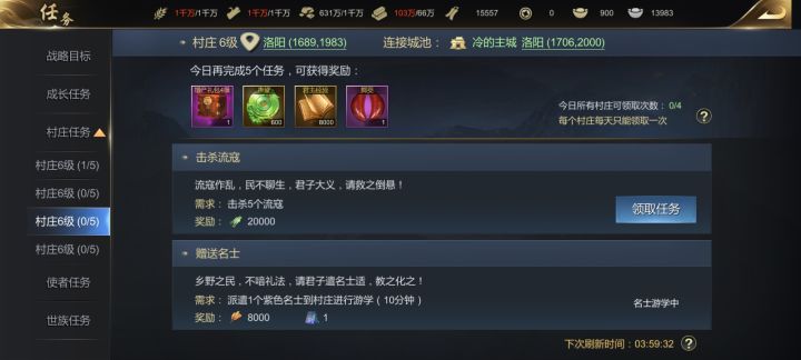 任务都已经过刷新时间了这俩村的任务咋还在游走中啊?也完成也不显示还有多久游走完成