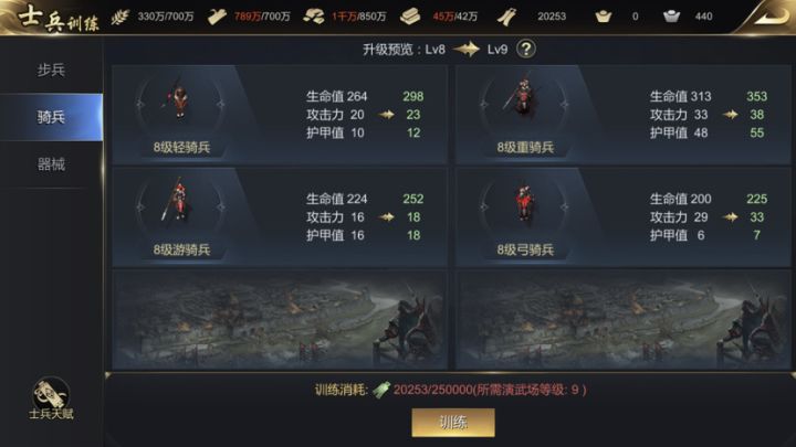 盾兵的防御低于骑,血低于骑,同时都拥有嘲讽,而且哪个国家骑兵比士兵还多?骑兵的马也需要一个马厩养马,建议骑兵的统御少一些,或者征骑兵的消耗要大于一个步兵的五倍,而且盾兵的感觉可有可无,弓箭手也没做到必须切掉的必要,打重骑就是刮痧,策划想想办法把重骑平衡一下,难道要大家都九队金骑?