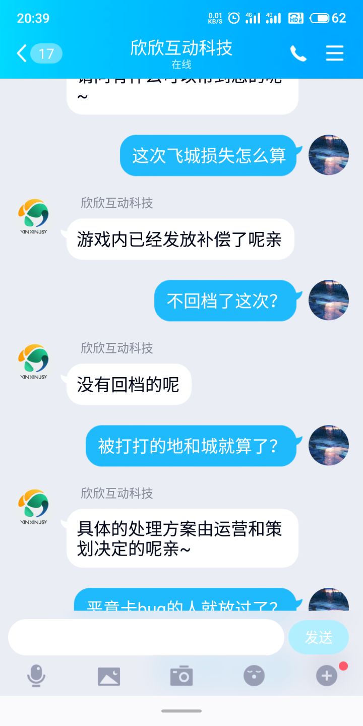 问客服就装傻充愣,上次打架还回档,这次出这种飞城bug就当眼瞎没看见😒被打的城就只有算了,呵呵😒