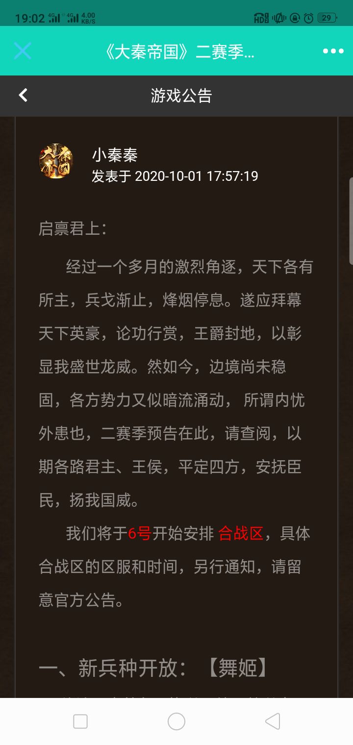 ???确定不是又一个nt策划嘛国庆快结束了开始合区?轮到我们区估计已经上班上学了哪有时间肝啊,国庆这么长时间早点合不好吗?本来人就不多,好多还是学生党,好不容易国庆有手机可以玩,结果非要等到放假结束才合。。。。恕我直言,策划您有去检测过智商吗?