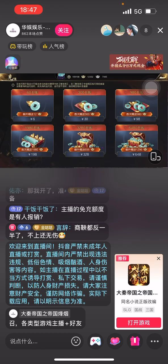 金戈铁马战九州,烽火狼烟叙大秦;大秦主播招募活动再开启!这一次《大秦帝国》与抖音官方达成合作,推出两大限时活动;20万现金奖励、抖音官方推荐;各种激励等你拿! 【活动一】 游戏推广小手柄限时奖励活动活动时间:10月5日-10月18日(14天)活动详情:点击以下链接查看活动奖励:1、 报名参与本次活动即有机会获得游戏推广小手柄抢先使用资格;(游戏推广小手柄是面向抖音主播的一种全新游