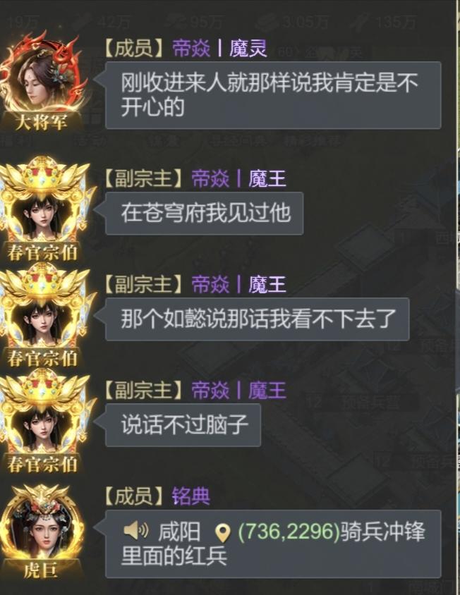 02区昨天已结束,关于一些人的疑问,这里解答一下!一:本次02剧本分区出来时,结局已注定,六国:4个战斗士族:桃园主分盟,问道,凤鸣,逍遥!秦国:1个战斗士族:江湖,3个种田士族:千润,二十三,剑!二:本赛季千润赛季计划落地时已明确:冲级不拆卡,普通成员开关50级即可,主力梯队冲级随意!三:关于千润冲级不打架的缘由,本着让江湖和问道1V1的,我们放弃前面的恩怨,不参与双方的战斗,主动让资