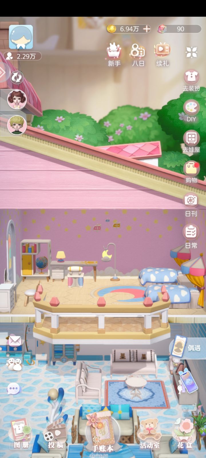 昨天下午在抖音刷到微肝+换装+布置家园+美美小偶+无氪金我直接垂直入坑我玩养成喜欢的是速通后再慢慢玩,当前进展如下欢迎18+的小伙伴加我咱们互吃蛋糕ID:Q2988F4804YC然后开始我是以赶主线为主要目标,后来玩到一半看了些攻略才知道有的地方有点绕远路了,这里提醒下和我一样的新手宝宝们几点。·家具优先买拍摄需要的,凑够一套拍摄有加成,衣服同理,优先凑够拍摄要用的一套。·偶遇先别急