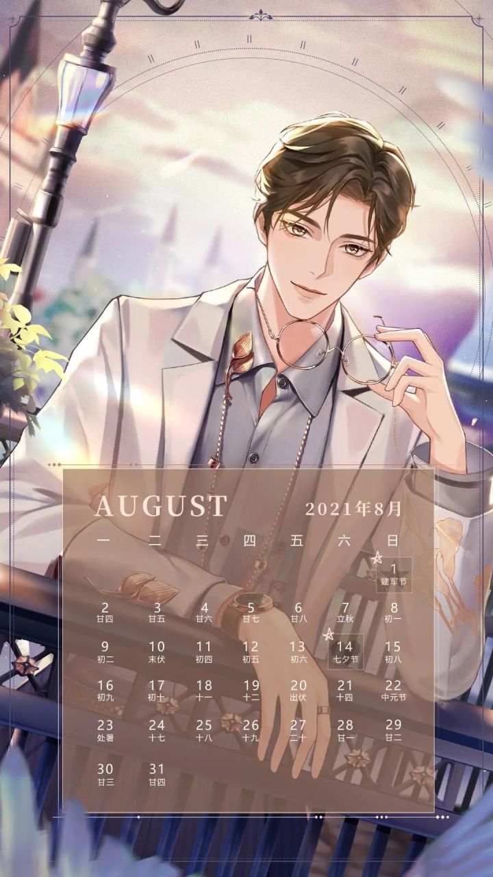 八月,三伏天中末伏到来预示着最后一波热浪来袭同时也意味着天气将逐渐转凉酷夏总算要离我们而去To Augest花语市·2021年·8月·月历立秋时节,热度悄悄消退白昼时长缩短,黑夜变长如艺人对本次月历的演绎双面陆唯,暖阳与夜色交映你更喜欢谁呢?✦✦✦花语市·2021年·8月·秋意迎来秋天后的一周便是七夕节牛郎织女鹊桥相会金秋八月,浪漫开启✦✦✦