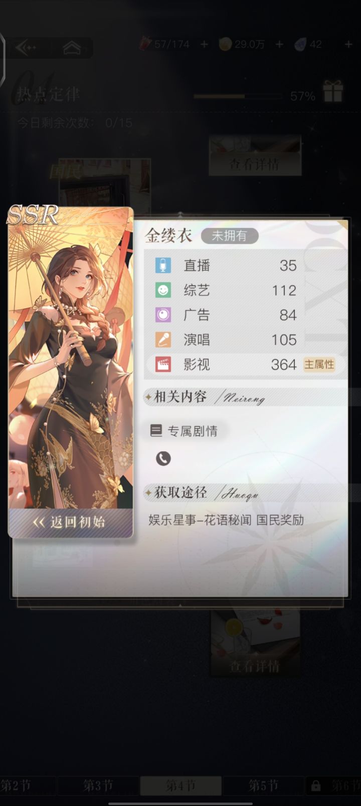上图工作室:星光传媒,实力236万娱乐星事全通关,经纪人守则平均二十七云端花路星光全通关21张角色ssr,18张场景ssr,五种属性都有三张以上工作室影响力8600万(童童的礼物送过黑卡)看了很多零氪朋友们的帖子,感觉我的账号算领先了