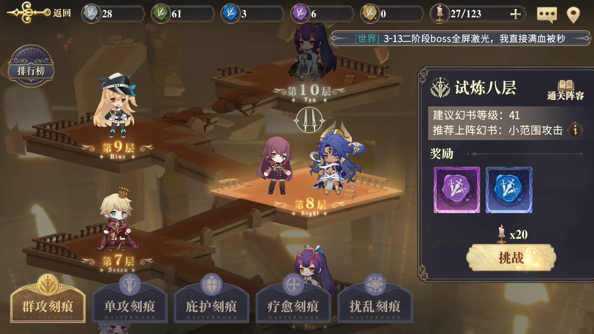 归位机制不会被援助触发所以手动一下还是挺好过的,前排死就死了狐狸不死就行。保证狐狸能活12回合放出两次大招,并且能清场,只提供思路剩下的自己改吧