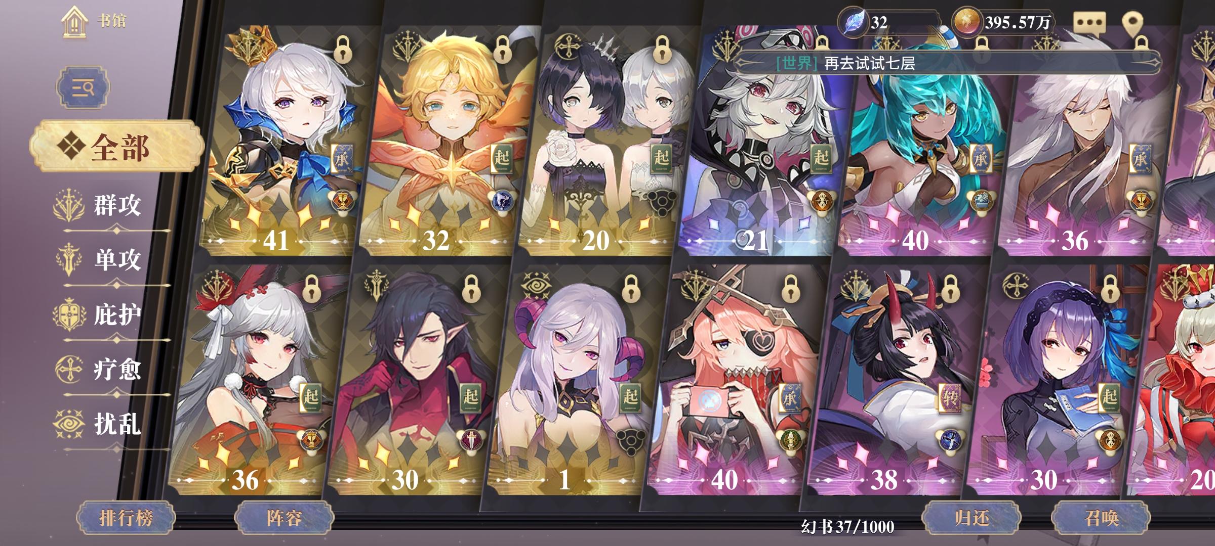 目前是召唤队一条道走到黑了 进度5-4没体力刷,全去刷探索4不得不说等级起来后罗兰开始发力,探索4深渊都可以一轮秒。现在输出经常和珍珑打平,在推图的时候基本上都能插出第二把剑阵容缺点 缺乏单体输出 罗宾我打算只当工具人暂时先不练了,召唤队单体输出有奥西里斯和德古拉,相比于获取难度来说我选择奥西里斯 目前暂时没有,有了第一时间拉满做攻略再说说迷信龙妈40增伤的事情,后面很多怪是不吃聚怪属性的,