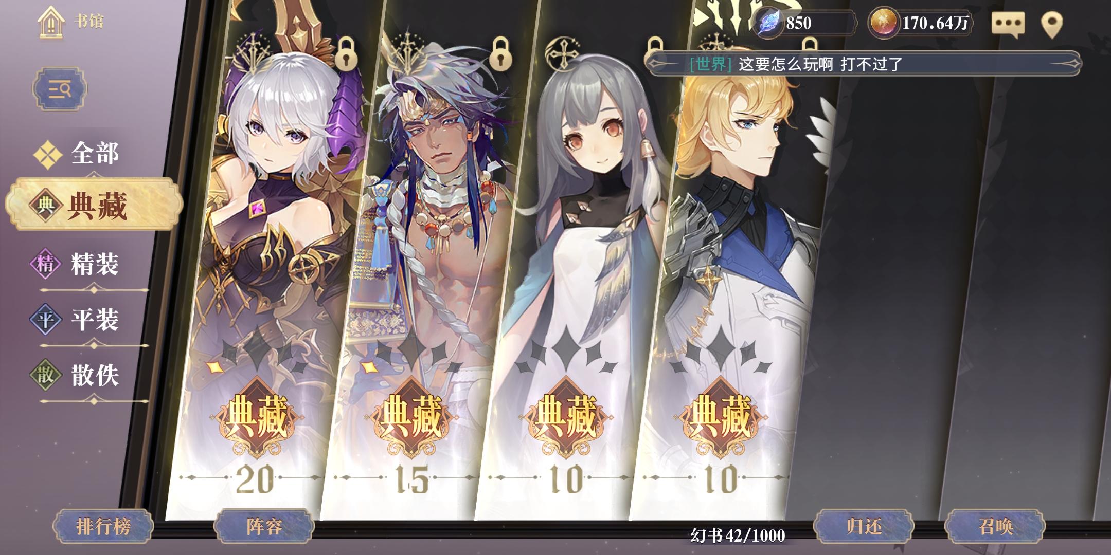 1.召唤队诺提拉斯 伊芙 罗宾 宁子,没有伊芙建议不要玩,诺提拉斯对标yys里面的丑女,而且是大范围的丑女,谁用谁知道2.debuffd队诺提拉斯 法芙娜 卡俄斯 胧,法芙娜没有可以换西尔芙3.不知道什么队,反正过御魂还不错珍珑 诺提拉斯 伊芙 法芙娜,这个队伊芙勉强可以换罗宾,法芙娜没有真玩不了不过我感觉我这个配置很低了,我0氪,而且这个号巨非,一共4个典藏,2个男天使,伊芙和法芙娜