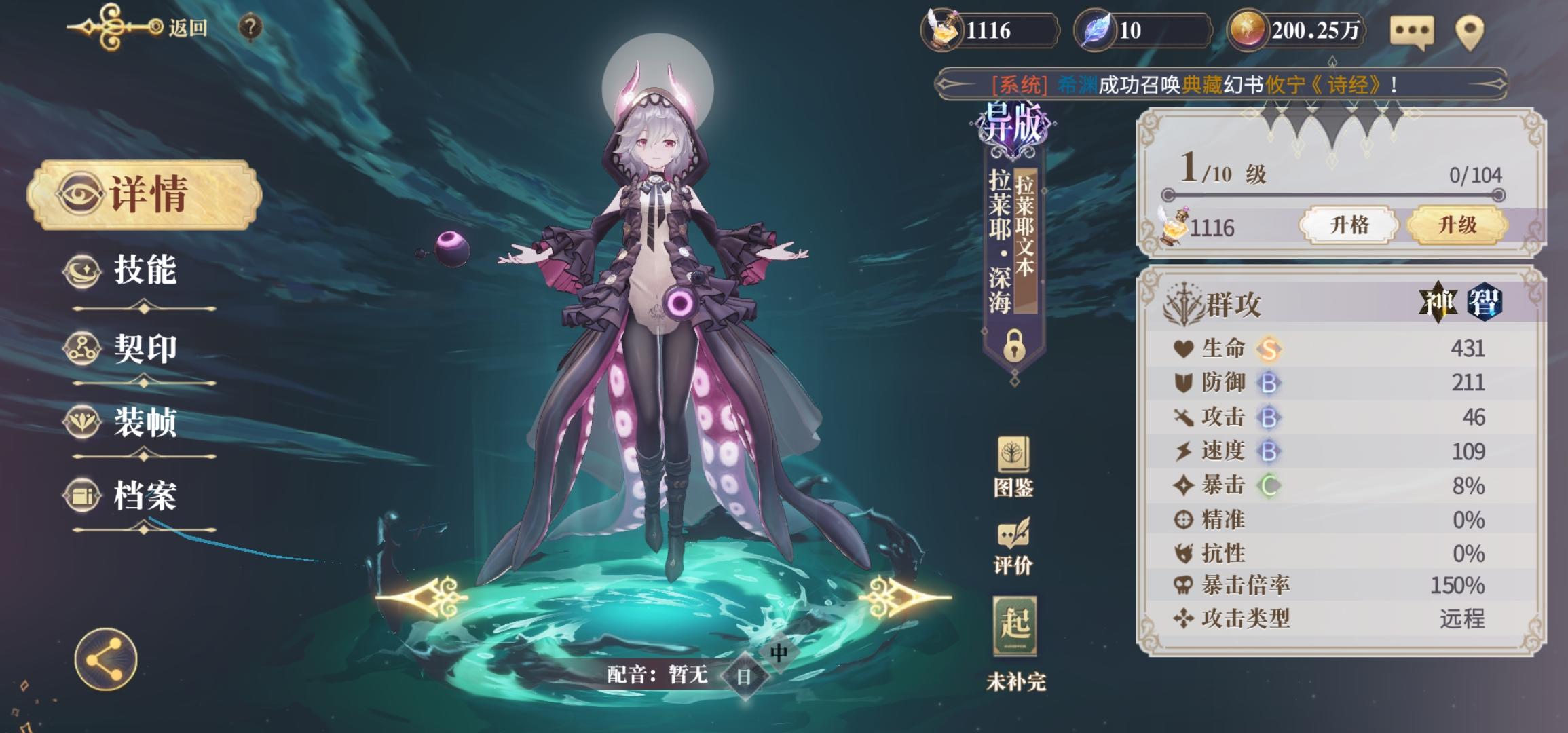 但是对于婴宁队来说,诗经不可替代,婴宁诗经曲流殇➕聚怪是最优解。现在推图进度到6-10。珍珑的作用已经极大的削弱了。boss的血条实在是厚,今晚还抽到了猫,也拉到40了,被动还拉到了80概率,目前感觉还可以。