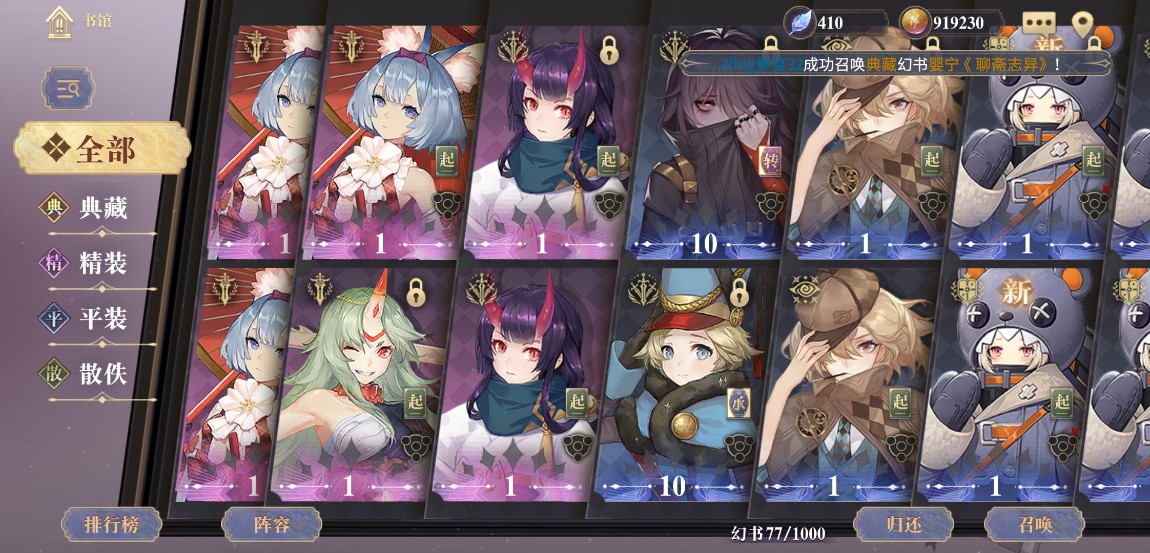在《幻书启世录》中,抽到同名幻书该怎么办?除了将幻书归还分解以外,还有一种可以提升幻书战力的方法,那就是“幻书补完”,一起来了解起承转合的魅力吧。消耗同名幻书,可以对幻书进行补完补完后可以提升幻书的补完阶段,小阶段的提升会为幻书提升基础属性,而大阶段的提升可以让幻书提升一次技能的加成,每两个小阶段后会提升到大阶段第一次补完幻书必定提升技能加成幻书的补完也可以使用典藏幻书《纯白幻页》代替同名