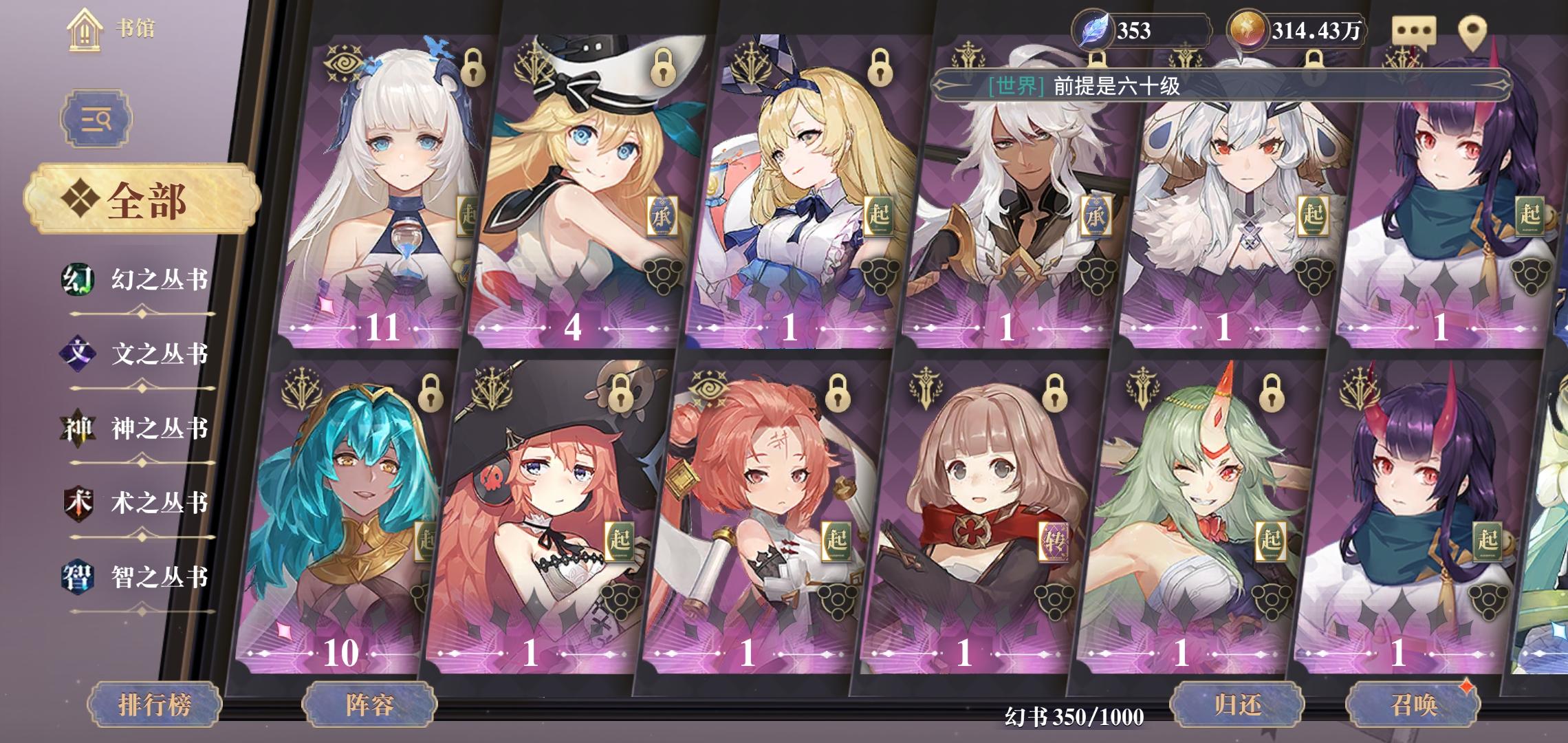 最近大家应该游戏也都玩了一周多了。很多人攻略也看了不少,这个让玩这个,那个让玩那个,玩了一堆又一堆。结果该卡的关还是卡,该过不去的还是过不去。主线目前是通过了,这个主线就没啥说的,关卡攻略都有的。契印目前第8层。一直没好的也没体力刷。说下这个游戏的理解,一千个读者就有一千个哈姆雷特。典藏都有其对应的强力点。可能是没有给它搭配好,也有可能只是暂时不强。所以抽到典藏的都应该感到高兴,毕竟生活已经那
