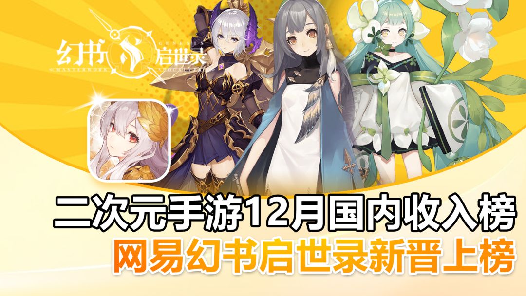 二次元手游12月国内收入榜,幻书启世录新晋上榜!