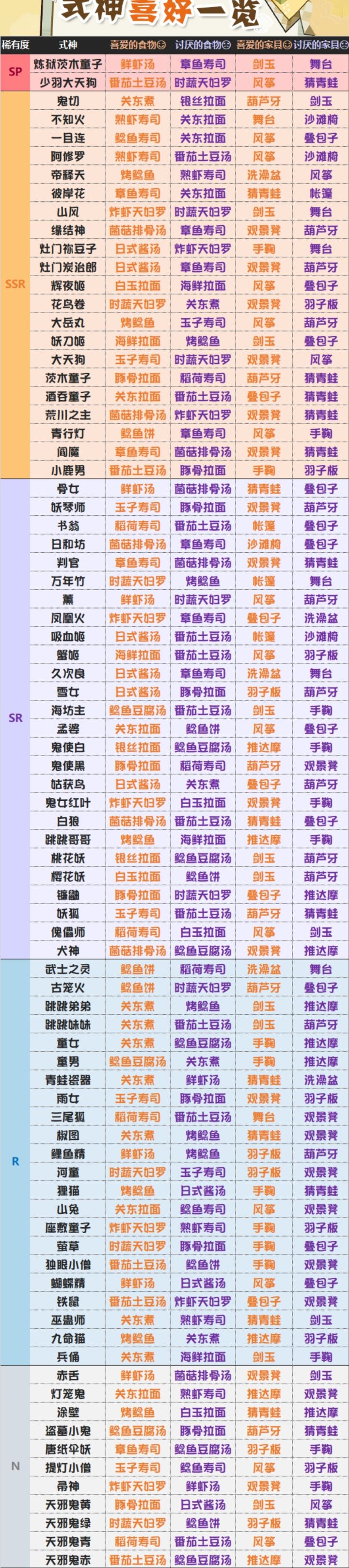 式神喜好一览(长期更新中)(鬼切版本更新)