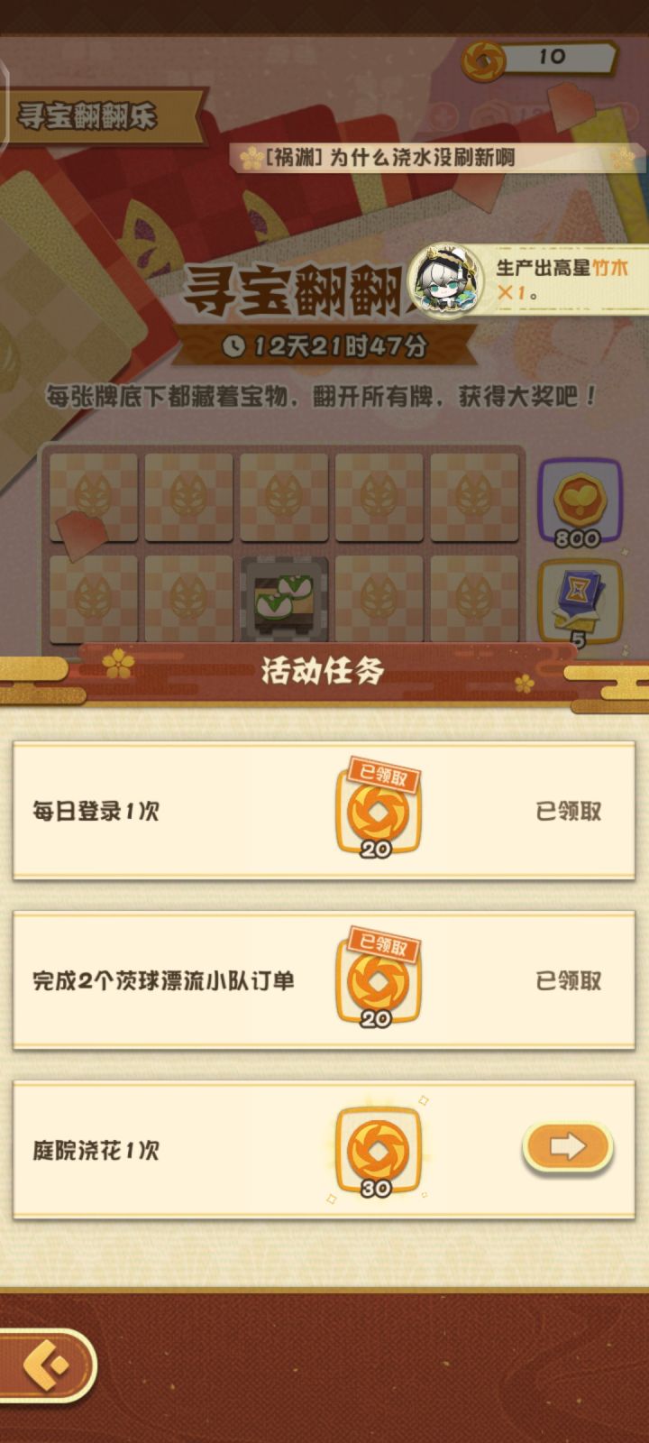 自己植物满了就浇不了水,还出任务,就不能换个?或者还能给别人浇水?啊?