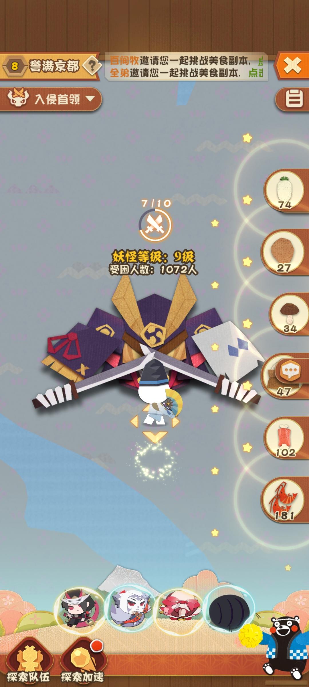 新手32个小任务解锁了熊本熊,但是探索点右下角出来的还是战斗收益,没有更换按钮啊……求解救……