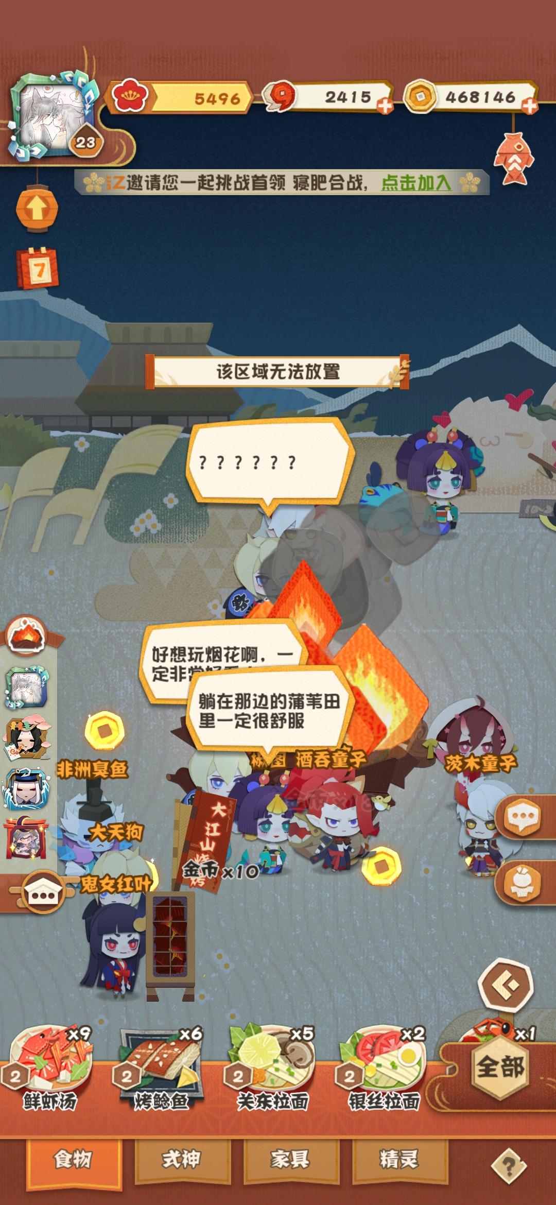 如图,就是放不上去,一点就显示该区域无法放置,为啥啊???结果开完篝火大会了,都没放上去过…