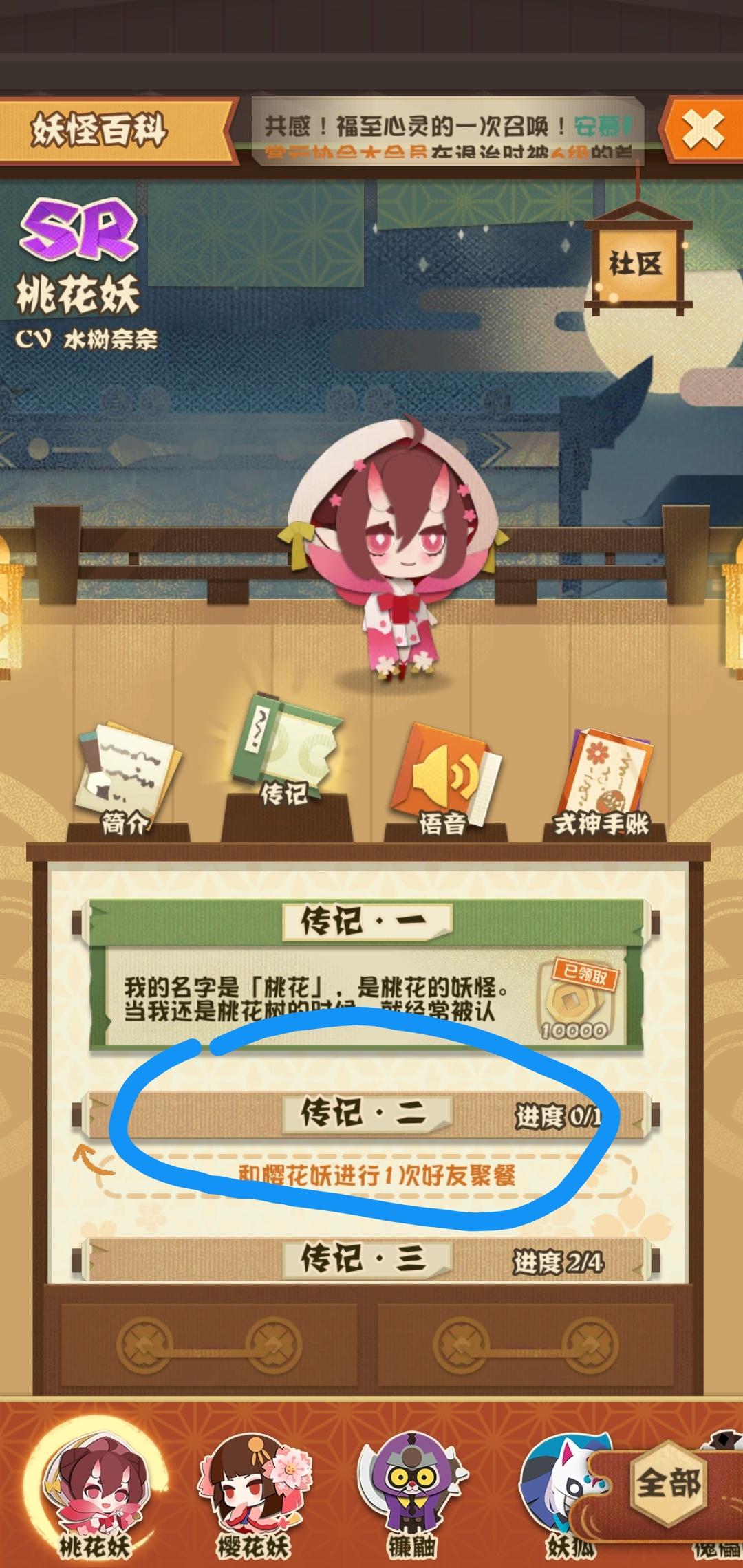 桃花妖的传记2怎么完成,我用樱花妖和她一起聚餐也完成不了