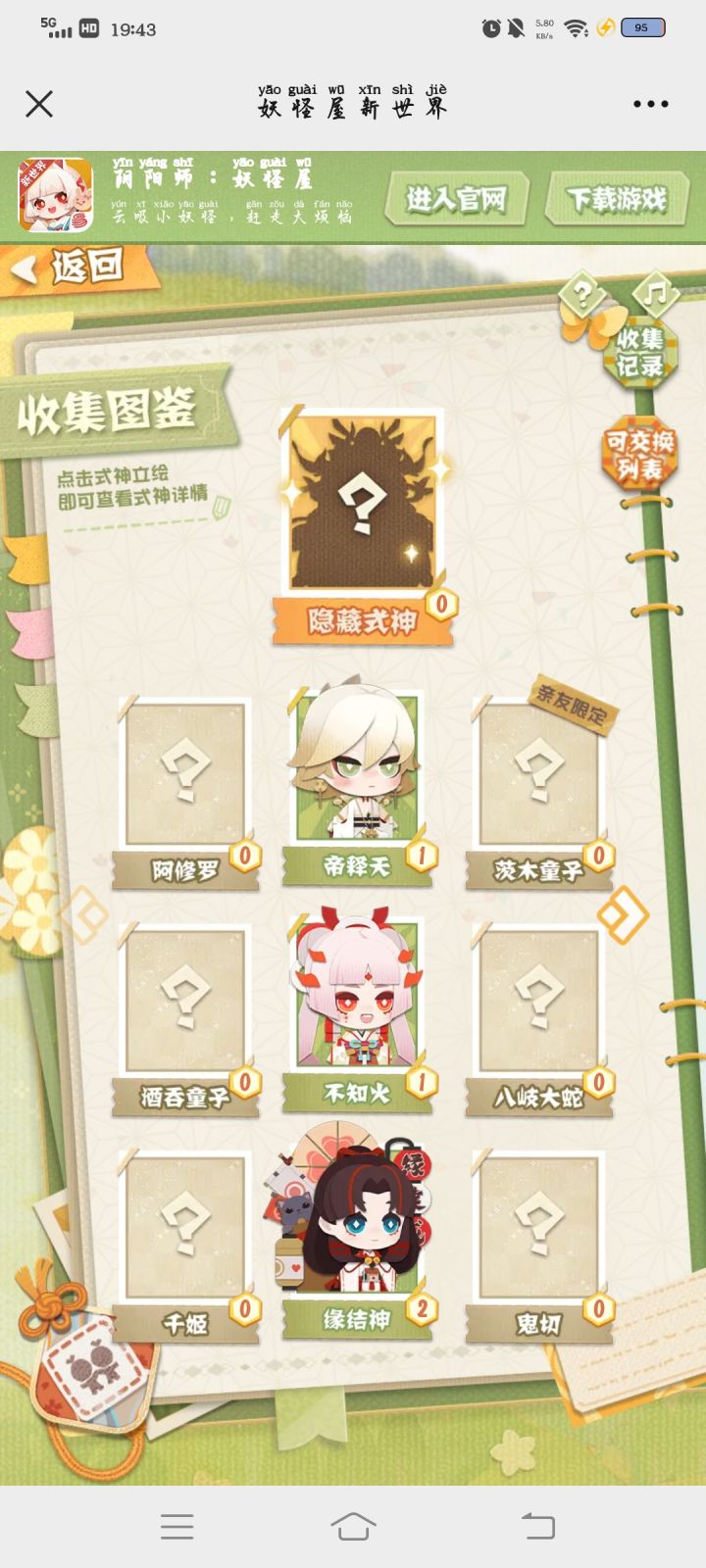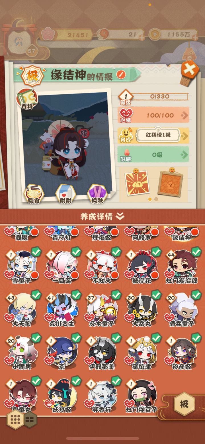 我拥有的:【缘结神】我需要的:【阿修罗】【茨木童子】【酒吞童子】【八岐大蛇】【千姬】【鬼切】