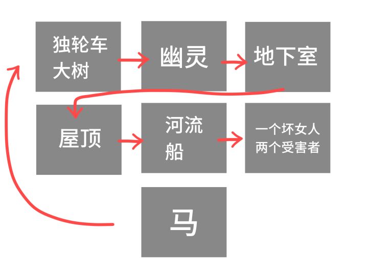 虽然已经通关了,但还有几个谜题没解锁就通关了,感觉砍了一部分内容,不知道是不是就我这种情况这个小章节有七个场景,因为通关了不想重玩,大概就是图二那样,按箭头→顺序解锁场景,大致讲下bug在哪:1.【独轮车】挪开后,那里有块土没挖2.进到有【幽灵】的客厅,左边柜子那边有个断掉的徽章没粘起来3.【地下室】盒子上的徽章没有找到,打字机下的抽屉没打开,打字机也没操作,左手边的一滩水/冰,没有铺东西