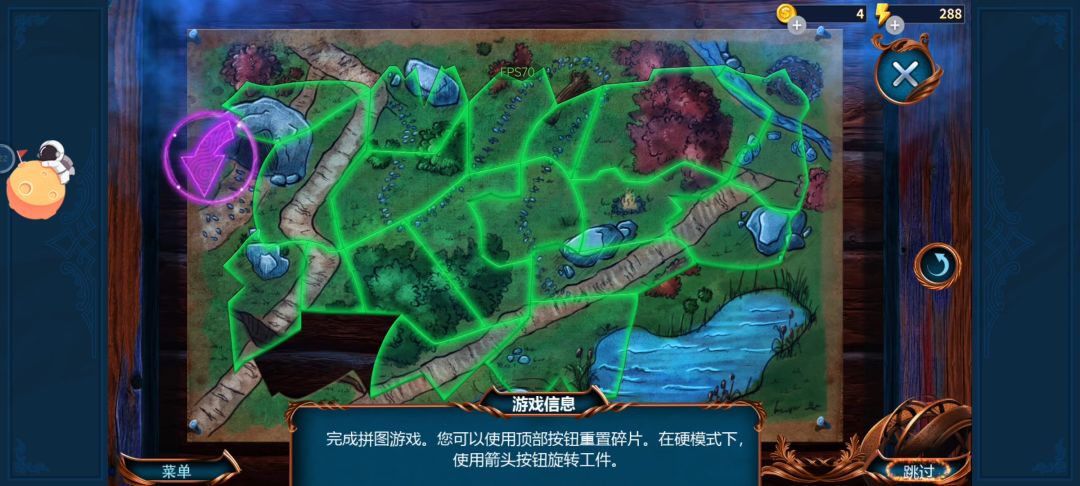 过关提示是左上角旋转拼图,结果左上角按钮根本没用,每片拼图自己像风车一样转个不停,需要盖在其他拼图上才能停下,最后一片一放到属于它空白位置就根本停不下来。