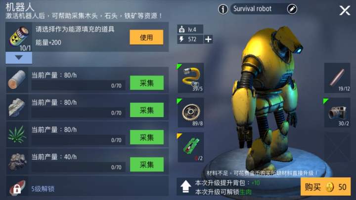 经历了版本更新,原来就是一组制做一组。 20做20个。现在只能是4个。优化了无需把材料放在包裹里,在箱子里的材料可以直接制做。但是特么,做出来的东西还需要我一个个手动放到箱子里,当然也可以理解系统也不知道你打算放在哪里,没办法做到给你归类。可以理解。新出的机器人,怎么说呢,好看不好用。电池难出。能采集的材料都是一些普通材料,很鸡肋,放着好看吧。每天12点重置每天6次广告,并且系统每天重置空投,