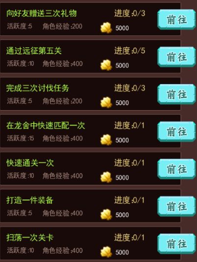 小小驯龙师-每日任务小小驯龙师是一款休闲放置类的恐龙挂机游戏。游戏包含了关卡挑战,恐龙搜集,天赋培养,挑战BOSS,远征挑战等丰富的游戏玩法。游戏主打的要素是恐龙的培育和繁殖,玩家可以通过游戏搜集到各种恐龙,并且通过龙舍繁育更强恐龙,根据搭配组合出自己的独特恐龙队伍,征服蛮荒世界。今天为大家带来的是游戏内的【每日任务】介绍。每日任务是我们获得经验和资源的重要手段,通过完成每日任务,可以获得大