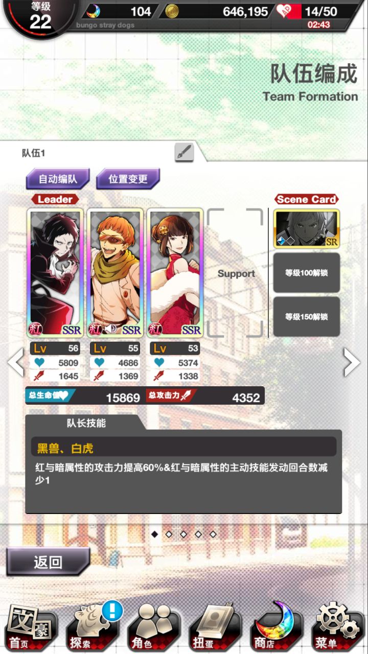 血统证明,开启欧皇之旅,超人气动画《文豪野犬》漫改手游《文豪迷犬怪奇谭》于8月22日正式开启了IOS/Android 双平台不删档测试!燃情盛夏,畅爽消除,豪华声优倾情献声,精致画面还原神作,广袤的横滨大地上,光明与黑暗的交接处,将由你来守护这里的黄昏!或许刚刚进入文野世界的新人们会略有迷茫,但相信在干练的探员们的带领下,玩家将会愈发地熟悉文野的世界。游戏的首页底栏中分别有首页、探索、角色、扭