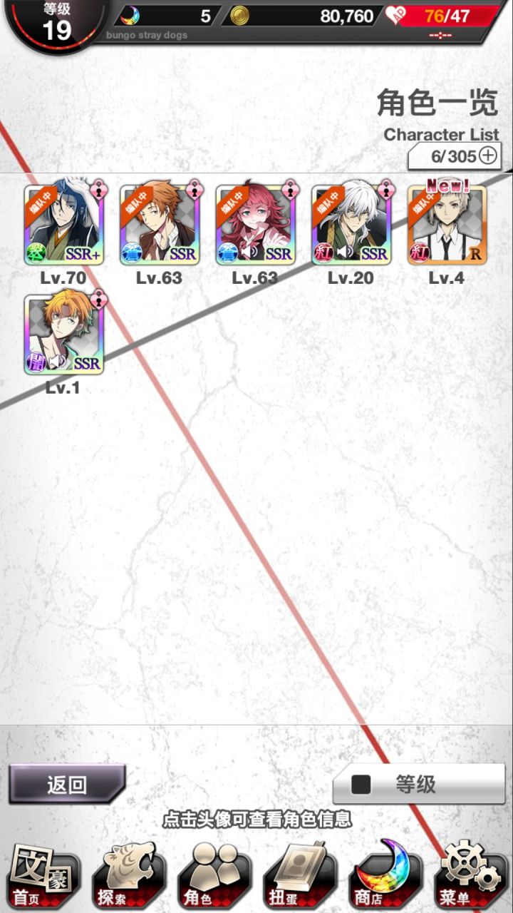 就咱来个闲聊我玩这个游戏也蛮久了。64个小时的感受。我和大多数人一样,都是冲着文豪野犬去的。我花了很多时间来打这个游戏。弹珠游戏,说实话有点无聊。因为这个体制,就是只能抽卡和打弹珠。但是!这里各种各样的ssr我真的是超级满足。可恶,立绘实在是太美丽了。作为第一个中厨我非常快乐(可惜抽卡像捅了太宰窝)虽然打法非常单一,但是卡池非常美好(捂脸)然后我玩了这么久也就33个ssr可恶还有三个重复。其