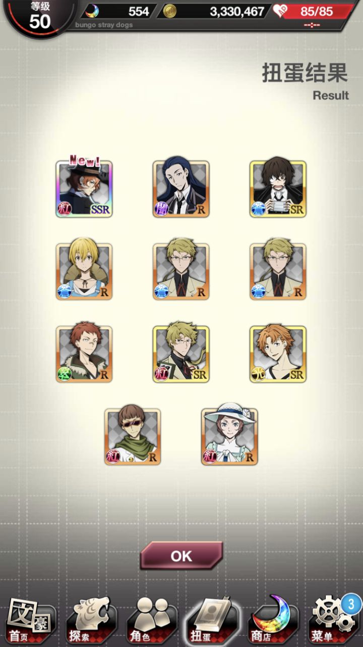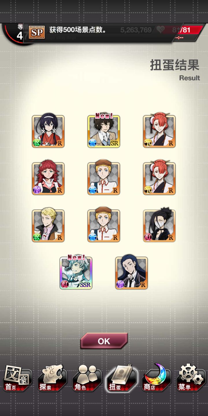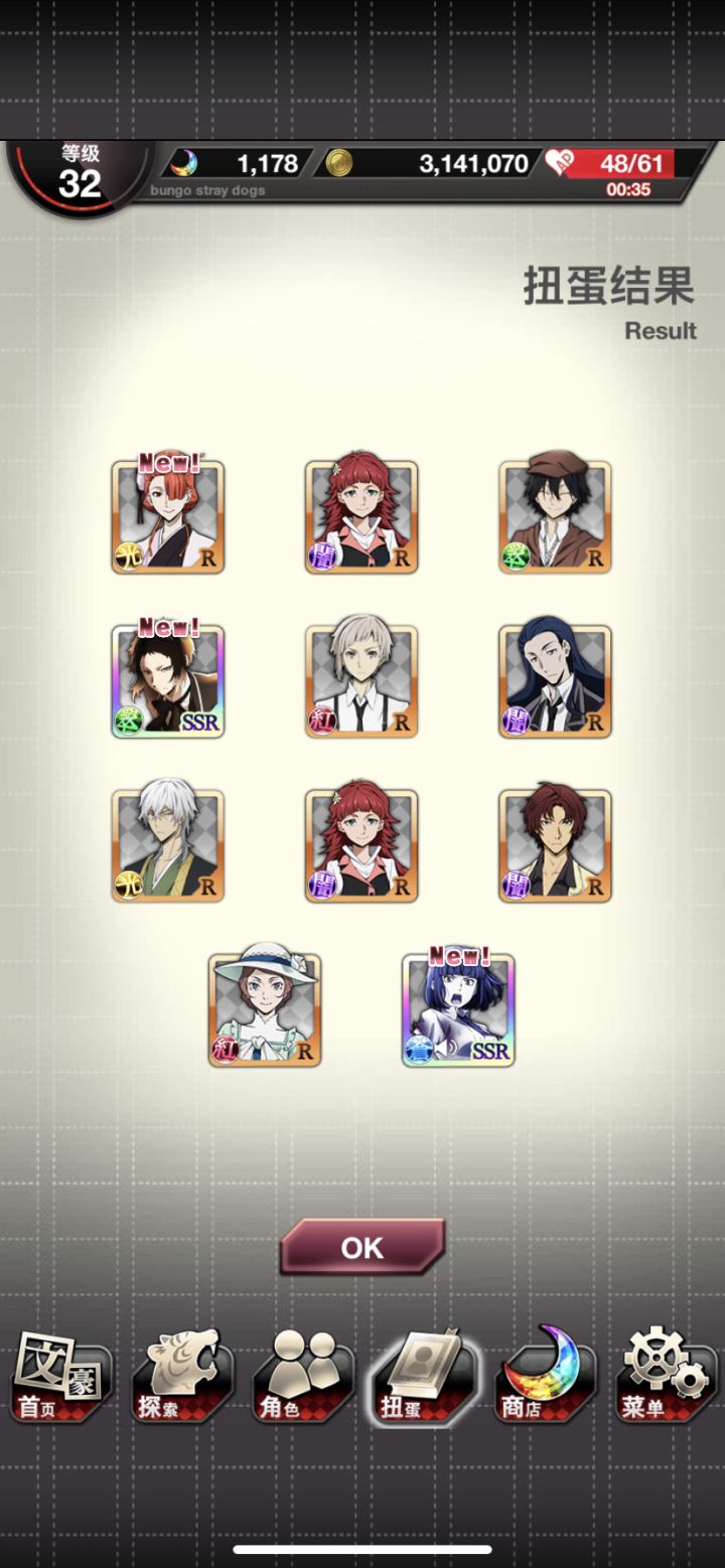 我又活了第一发出了正装中也以后我终于在step7搞到了芥芥和与谢野!!!!!!