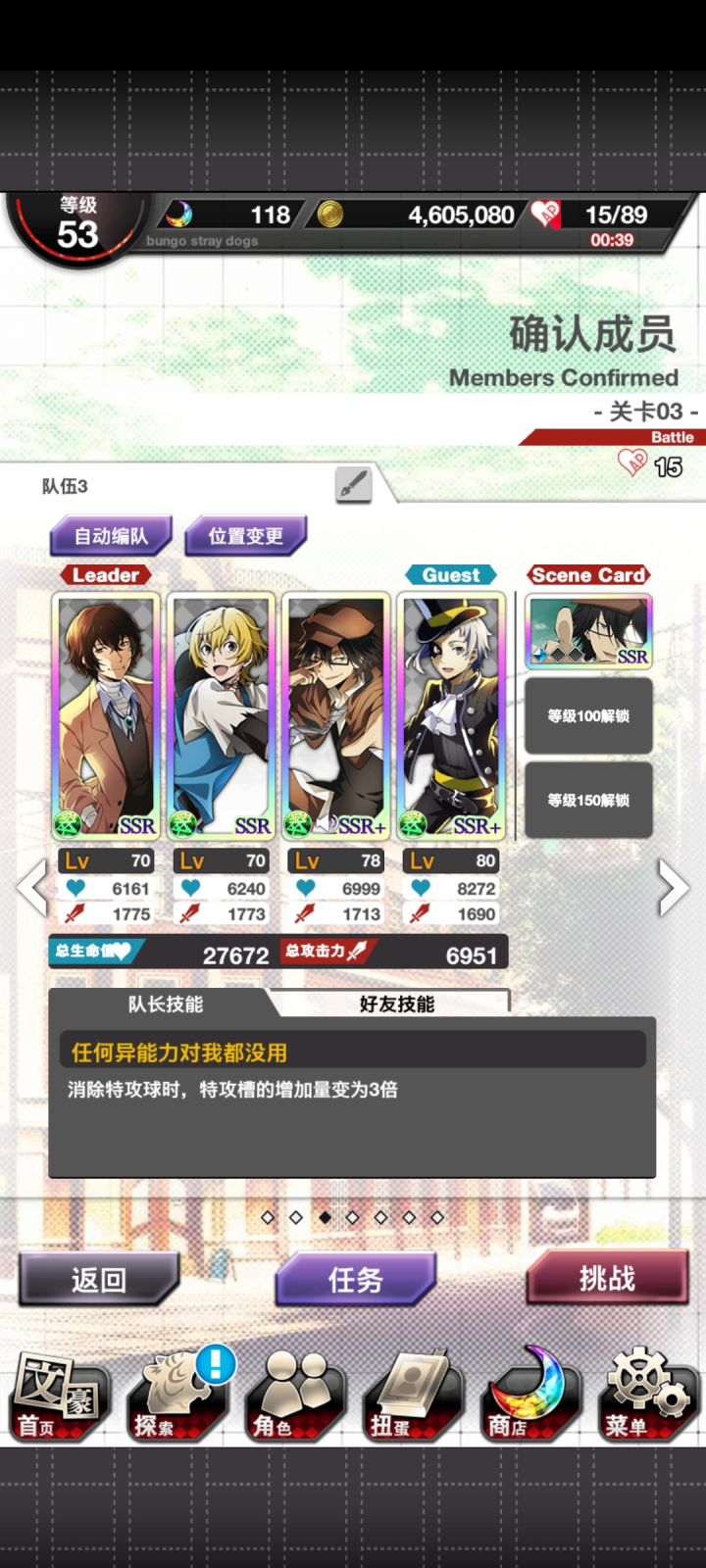 Hard本我是用这个阵容打的,蹭别人的怪盗敦用,怪盗敦的技能真的好使,普通ssr比较推荐用这几个。敌人都是苍属性,全翠队打还是比较好。但是我打不动极难本了,我翠队没有材料进化,用我全ssr+的暗队打也打不动orz
