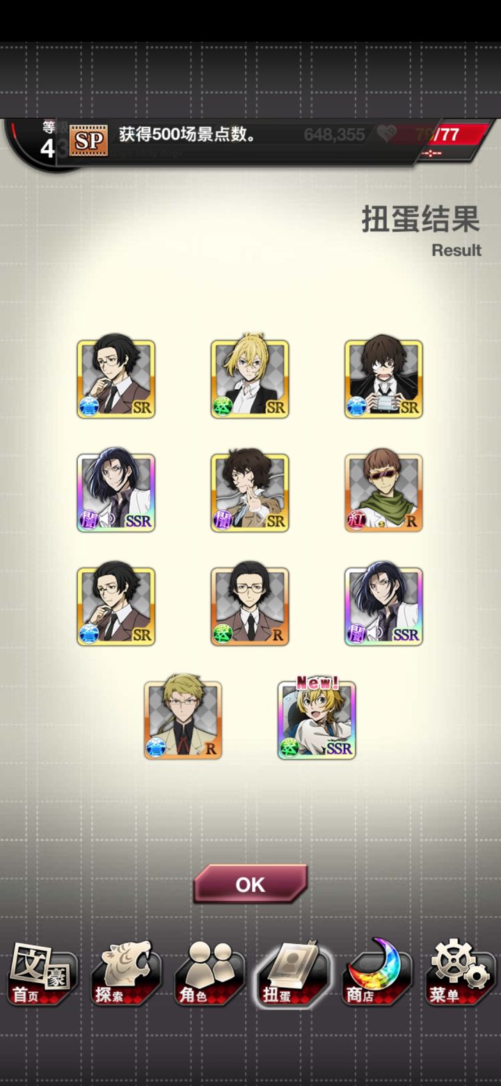 没有【月下兽】中岛敦,这次的概率上升池不想抽,概率改后我正装up池还能歪,不敢想象这次的概率上升池,我还要攒石头抽异能节第二弹,异能节第一弹1000+石头砸下去一个限定卡都没有,我已经怕了。所以想请问大家这次敦君UR觉醒材料需要多少个ssr和多少个sr啊,是和进化的材料分配一样吗?我不知道材料分配,不知道该怎么打。恳求有人告诉我,非常感谢。