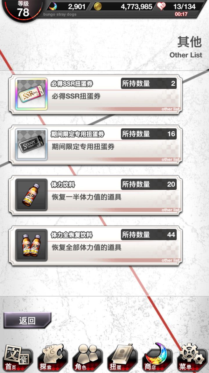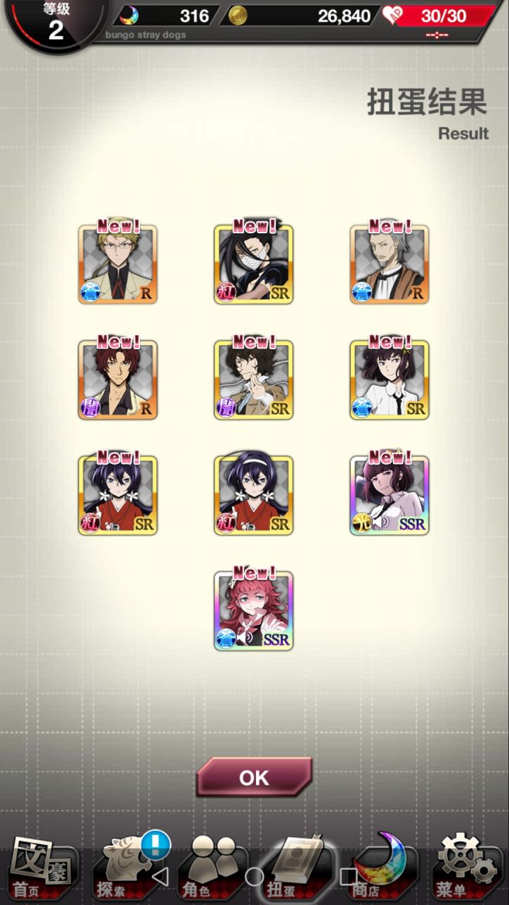 第一次玩这样的游戏不知道这样算不算欧.....(平均下来每次十连都有一个ssr但是限定池除了中华街那次之后次次都歪而且还重复)