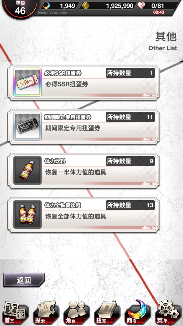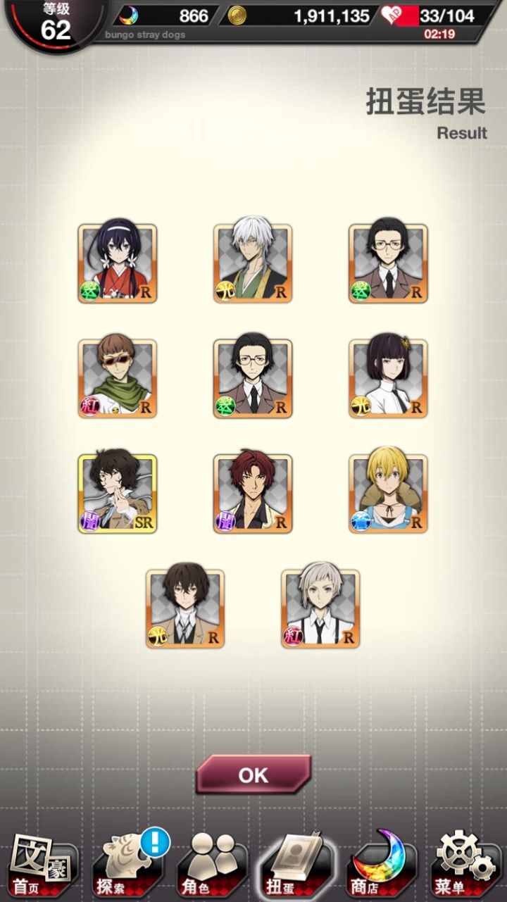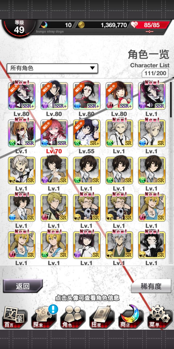 太难了😭开服到现在抽了好多次11连了,ssr抽到了两个月下兽·罗生门,一个月下兽,两个镜花,与谢野也有了,限定中华俩都有了,还有了森鸥外、谷琦、贤治、安吾为啥就是抽不到太宰!😭上期限定都过了也没抽到……心好累难道注定与太宰无缘吗