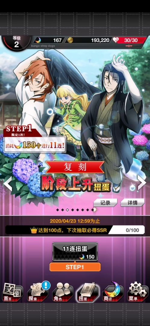 如题。我怀疑是bug。而且不止我一个人出现这种情况,用模拟器玩手游的姐妹也出现这样的情况了。刚看贴吧同样。事情是这样的。下午起床打开文野手游准备试一下新出的step池(这个图是我在发现bug后用另一个号截的,别杠)以上,step池截图,step池详情,隔壁无step池截图。(注意现在的池子数是8个)接下来就开始抽了!step1,我非,没出ssr。但是!在我抽完step1之后!视频里